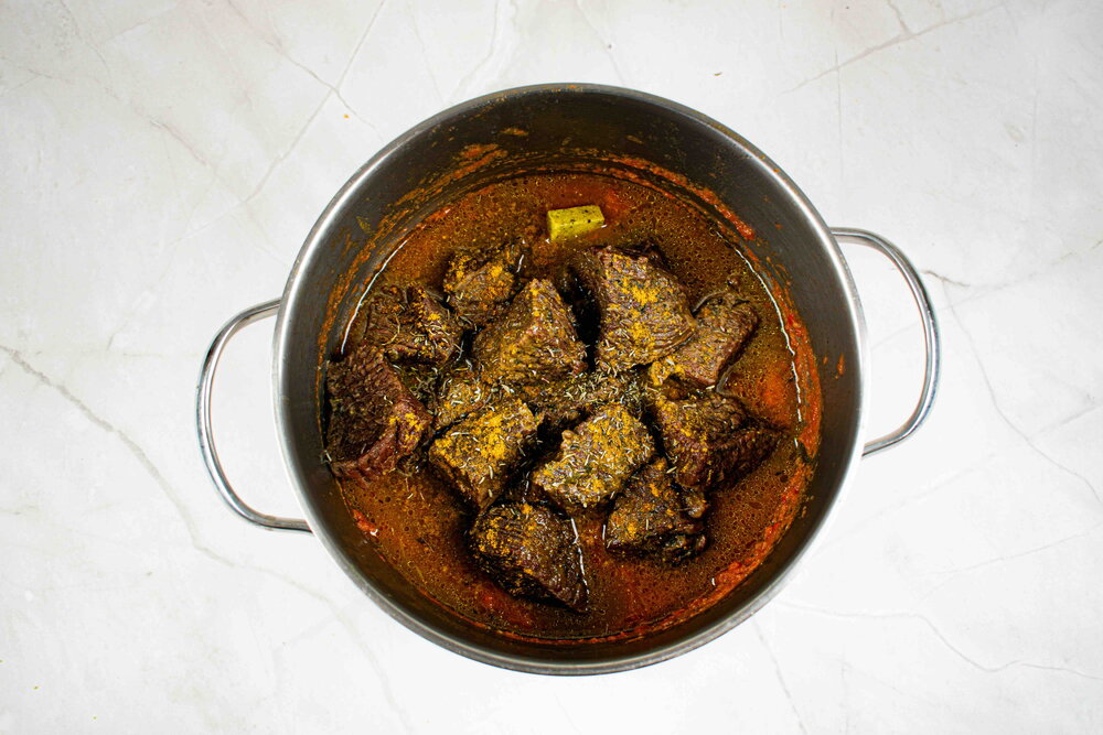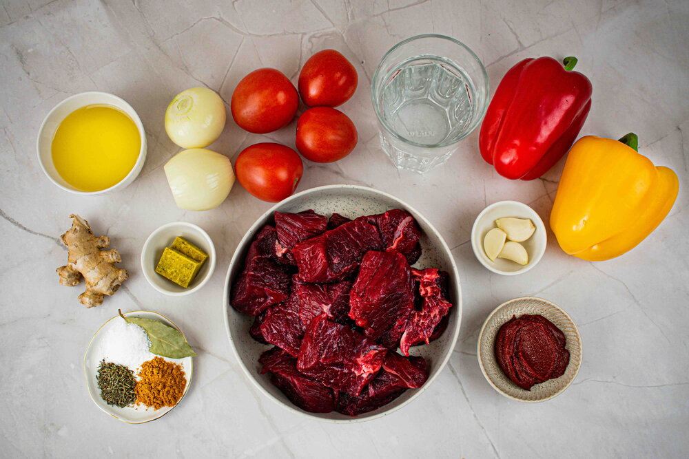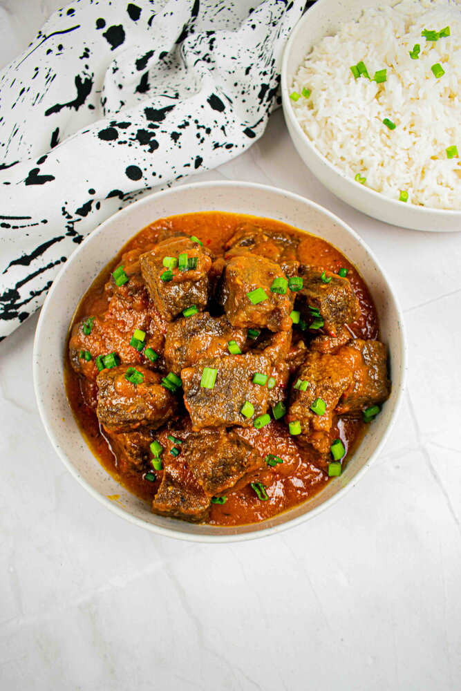 A flavorful beef curry made with tender chunks of beef simmered in a rich, spiced pepper and tomato sauce. Served with rice, this hearty and aromatic dish is perfect for a comforting homemade meal.