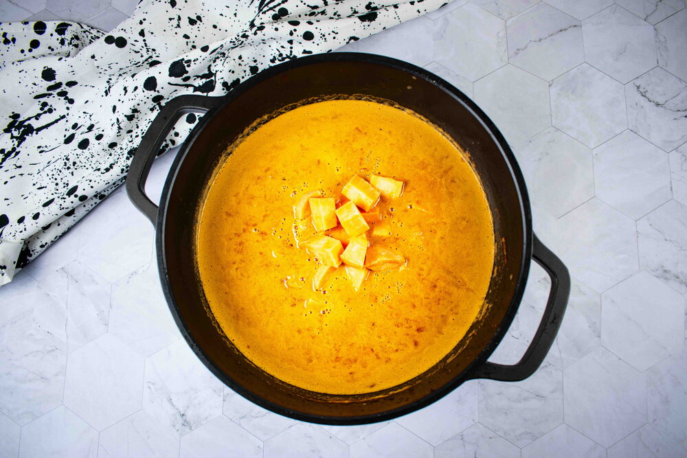 Creamy chicken and sweet potato soup with tomatoes, peanut butter, and warming spices - rich, comforting, and full of bold, satisfying flavor.