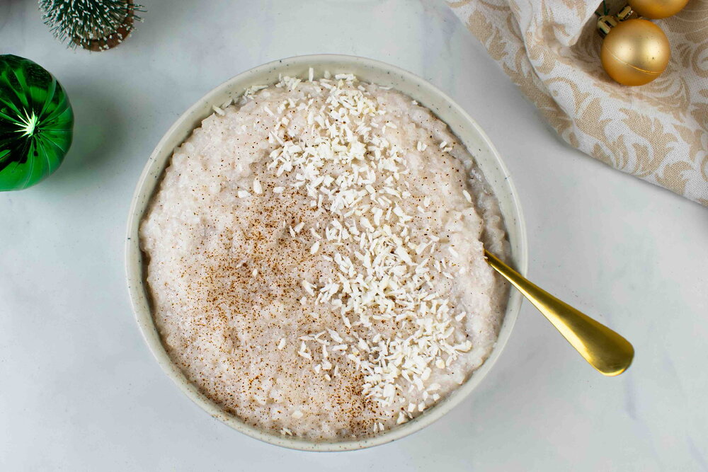 Creamy coconut rice pudding gently spiced with cinnamon - a comforting, homemade dessert that’s simple, cozy, and deliciously smooth.