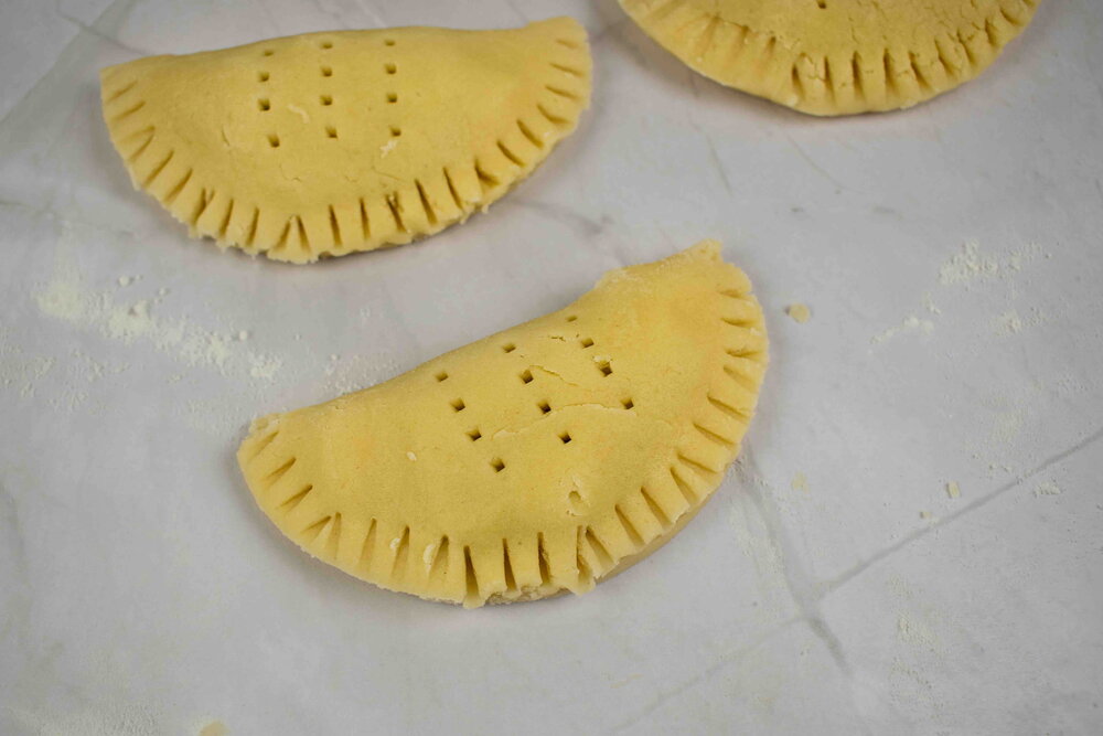Serve the baked pies hot or cold.