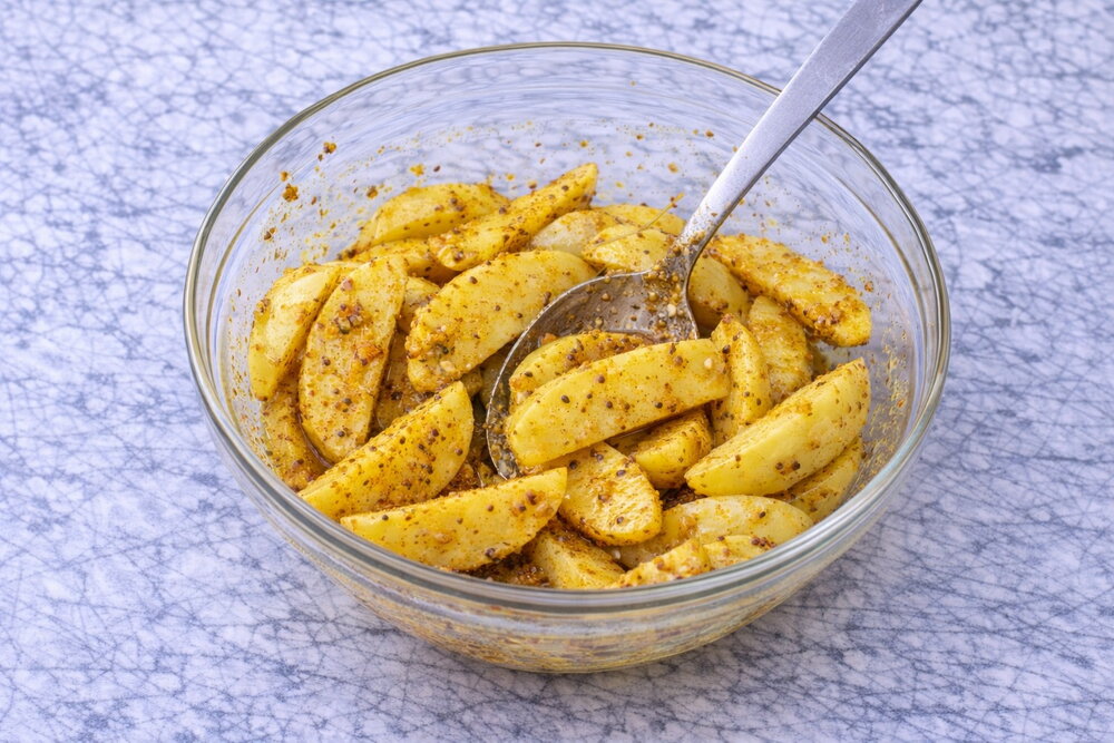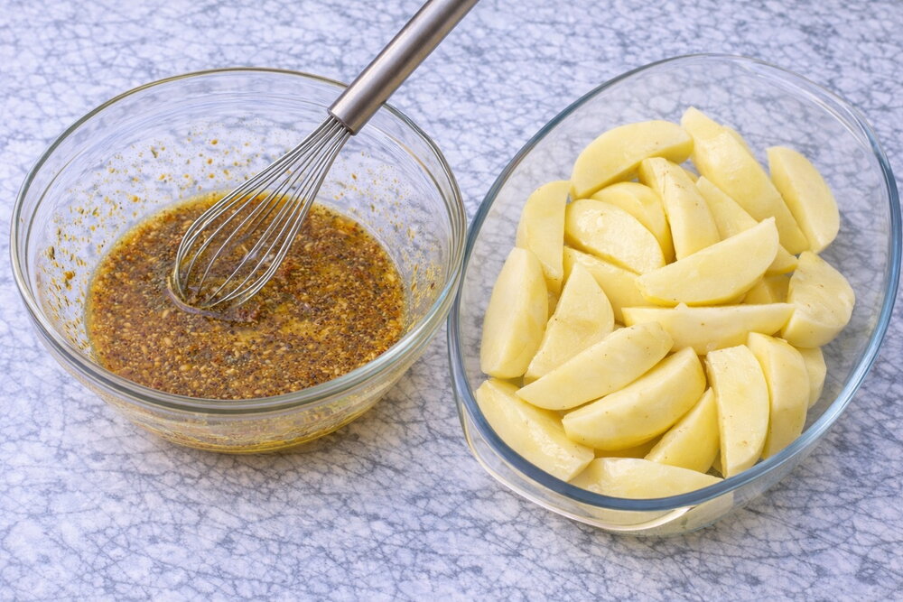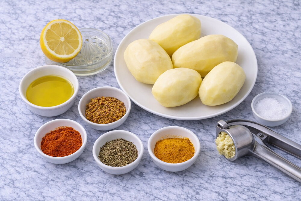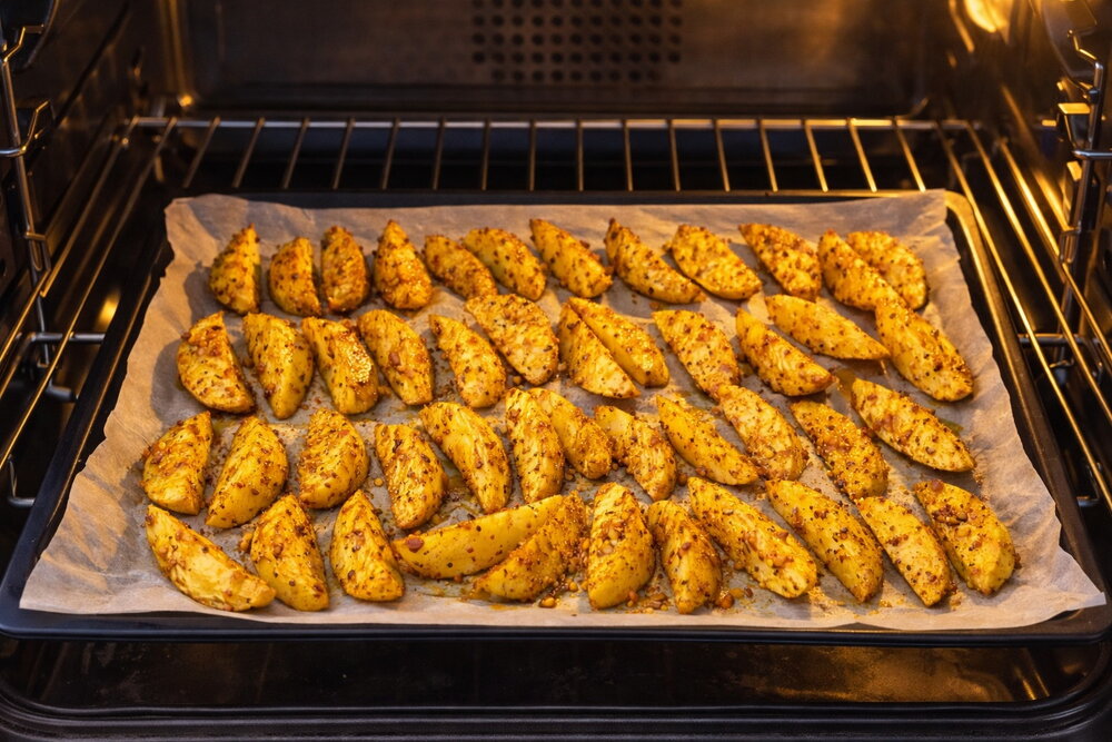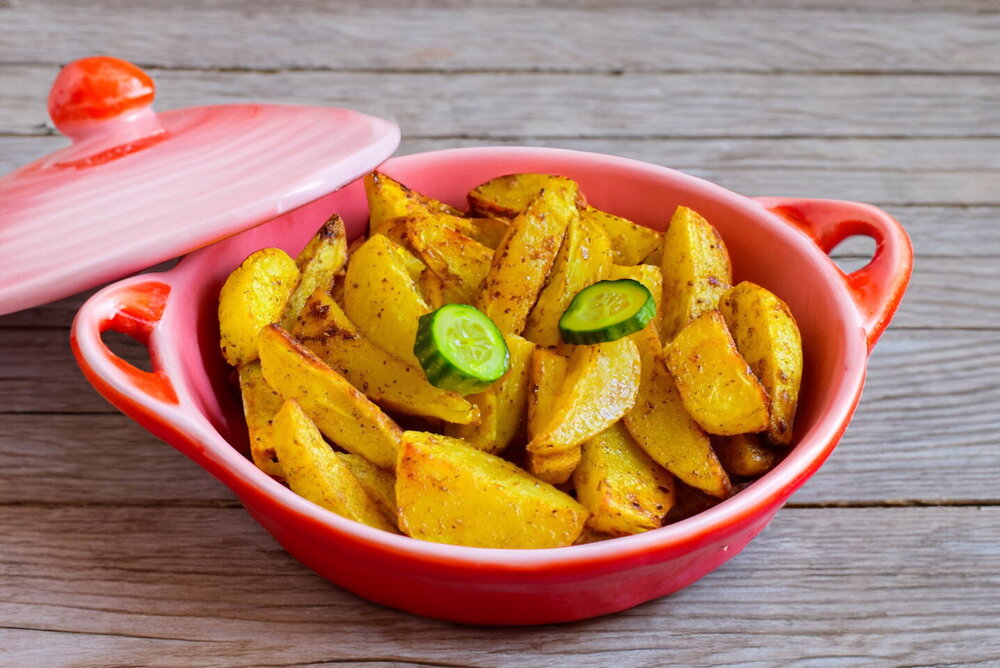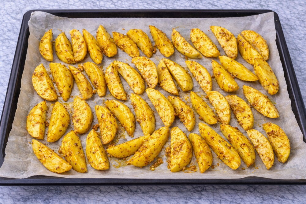 Appetizing, tasty, budget-friendly, perfect for a festive table! Oven-baked garlic potatoes turn crispy on the outside and soft inside. Add any spices you like to change the flavor!