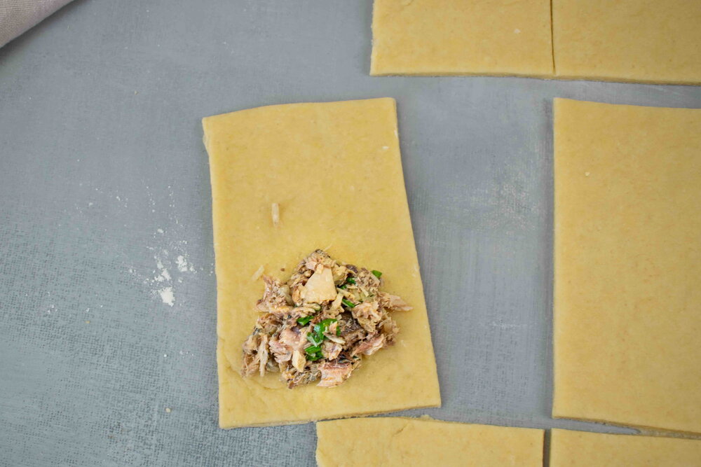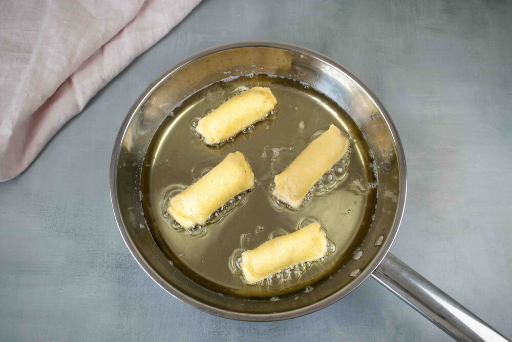 Quick rolls with mackerel in a pan